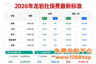 服务关键词:龙岩2026年社保标准多少,外地公司在龙岩用工如何缴纳社保,龙岩办事处社保怎么交,龙岩五险一金代买,龙岩本地劳务派遣公司哪家专业,龙岩职工社保外包,龙岩企业社保代缴服务方案。