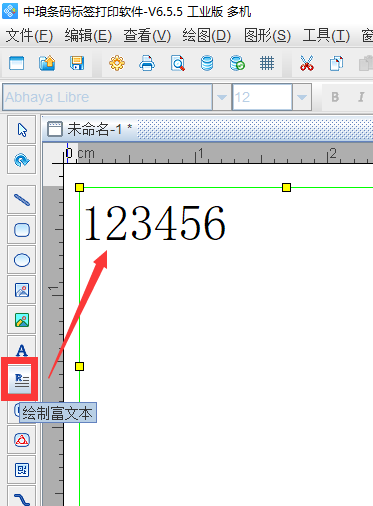 点击软件左侧工具栏中“绘制富文本”图标,并在画布合适的绘制进行绘制一个富文本对象。